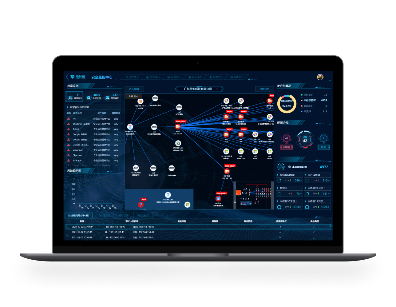 安全運(yùn)營(yíng)管理平臺(tái)是集資產(chǎn)管理、IP管理、資產(chǎn)處置、基線管理、風(fēng)險(xiǎn)管理、漏洞管理、安全通告、運(yùn)營(yíng)中心于一體的系統(tǒng),在平臺(tái)上解決技術(shù)人員、業(yè)務(wù)人員、管理人在資產(chǎn)管理、項(xiàng)目管理、安全運(yùn)維、運(yùn)維巡檢等工作問(wèn)題